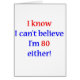 I know, I can't believe I'm 80 either! Humourous design for the 80 year old who knows they don't look 80. Makes a great 80th birthday gift.