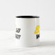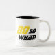 80 So what Inspirational Funny 80th Birthday Two-Tone Coffee Mug. A great birthday gift idea for a man or a woman who celebrates 80th birthday and has a sense of humour. The text reads 80 So what - you can change the age number. The text is in yellow and black. Great present for 80 years old woman or man.
