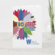 80th birthday card. A wonderful birthday card for a friend who enjoys sewing. Send you birthday greetings with this beautiful quilted flower. Each petal is a different pattern with white stitching. Your quilting friend will love this birthday card. A lovely verse inside completes this birthday card to say to someone 'happy 80th birthday".