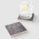 The coasters are gorgeous, a quality feel and heavy weight. They look like a precious archeological find. A rustic stone juxtaposed with a modern floral black and white print. I like the way the print goes slightly imperfect on the cut stone edges giving them a kind-of natural beauty.