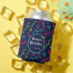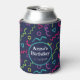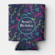 This is cute custom personalised birthday can cooler featuring fun retro 80s and 90s neon party pattern with confetti and abstract shapes designed in the famous Memphis style. You can change the name and the date on the design using personalise button