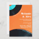 80s Retro Vinyl Record Photo wedding invitation template, bold vintage orange wedding invite.