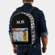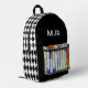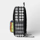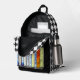 .: This backpack has a fun design featuring bold, primary colours along black and white argyle sides and upper and cassette design on pocket.
