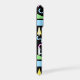 1980s style pattern in colorful shapes of green, yellow, blue and yellow on a black background.