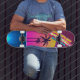 80's style skateboard, retro futuristic landscape skateboard