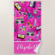 80s Vibes Neon Pink Summer Retro Your Name Printed Beach Towel