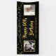 Celebrate any age birthday (shown for an 80th) with this editable black and gold banner sign featuring 2 photos (perhaps "then and now" pictures, your custom text shown in an editable hand-lettered calligraphy typography and gold and white string lights. EDITABLE COLOR: The black background colour and text fonts and colour can be changed to coordinate with your party colours by in the EDIT section. The sample is shown in the 2.5x6' indoor option--other sizes and "outdoor" are available on the ordering page. ASSISTANCE: For help with design modification or personalisation, colour change, resizing, transferring the design to another product or if you would like coordinating items, contact the designer BEFORE ORDERING via the Zazzle Chat MESSAGE tab below or email makeitaboutyoustore@gmail.com.