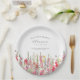 Perfect table decor for an August birthday party. Pink gladiolus is the birth flower for that month. It forms a pretty watercolor bottom border on this floral personalised plate. The birthday guest of honour's name, age and birthdate are placed above it using elegant calligraphy and typography. All text is editable.