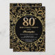 80th Birthday Black and Gold Floral Pattern Invitation