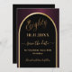 A Save the Date card for a 80th birthday party. A black and burgundy background, decorated with a faux gold arch. Personalise and add a date and your name. The text: Eighty and Save the Date is written with a large trendy hand lettered style script.