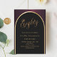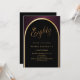 An elegant 80th birthday invitation. A black and burgundy background with a golden arch on the front.