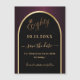 A magnetic Save the Date card for a 80th birthday party. A black and burgundy background, decorated with a faux gold arch. Personalise and add a date and your name. The text: Eighty and Save the Date is written with a large trendy hand lettered style script.