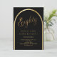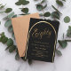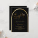An elegant 80th birthday invitation. A black background with a golden arch on the front.