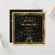 A trendy, modern 80th birthday party invitation card for a woman. A classic black background, with faux gold frame and flutes, glass and bubbles, golden coloured letters. Templates for your party information.