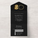 A black background, decorated with a large number 80 in faux gold. Personalise and add a photo, name, party details, RSVP date, return address and name.