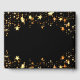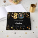 A stylish black background with faux gold stars. Add your photo, name, and text. Age number is written with a balloon style font.