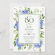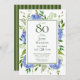 This blue hydrangea 80th Birthday invitation is perfect for celebrating your wife, mum, sister, aunt, friend, grandmother. It's lovely watercolor flowers, coordinating green striped back, and clean type make it stunning, modern yet classic! It's super easy to make these invitations by selecting Personalise this template and typing in your information. In a flash you can see how gorgeous your invitations will be!