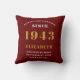 Celebrate a special 80th birthday in style with this elegant red and gold throw pillow. Personalise it with the name of the special birthday boy or girl, as well as the year they were born in 1943. This beautiful custom pillow is sure to be cherished for years to come and will make a wonderful addition to any home décor. Make this 80th birthday extra special and add a unique, personalised touch with this beautiful red and gold pillow.