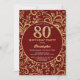 80th Birthday Burgundy Red and Gold Floral Pattern Invitation