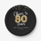 80th Birthday Cheers to 80 Years Black Gold Paper Plate