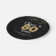 80th Birthday Cheers to 80 Years Black Gold Paper Plates. Celebrate an 80th birthday for her or him with these modern and festive personalised party paper plates featuring the title CHEERS TO 80 YEARS with faux metallic gold balloon numbers and script typography, gold confetti and your custom text in your choice of background colour (shown in black) to coordinate with your party theme colours. ASSISTANCE: For help with design modification, transferring the design to another product or if you would like coordinating items, contact the designer BEFORE ordering via Zazzle Chat or email makeitaboutyoustore@gmail.com.