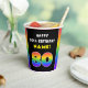 This upbeat and joyful birthday paper cup design features a large number “80“ with a vibrant multicolored rainbow spectrum inspired gradient pattern, along with the message “HAPPY 80th BIRTHDAY,”, and an editable recipient name. Birthday themed paper cups like this might be used at a birthday party celebrating somebody’s eightieth birthday. [~Z0000639]