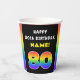80th Birthday: Colourful Rainbow # 80, Custom Name Paper Cups