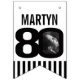 80th black on white add your own three photos birthday bunting flags. Personalise with your own honouring name and three photos in the 0 of 80. Uniquely design by www.mylittleeden.com