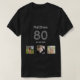 For a 80th birthday as a gift or for the party. A collage of 3 of your photos of himself friends, family, interest or pets. Personalise and add his name, age 80 and a date. Date of birth or the date of the birthday party. Grey and white coloured text.