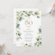 This exquisite, watercolor eucalyptus with gold leaf embellishments and gold splattered dots 80th birthday party invitation with card request is perfect for celebrating your wife, mum, sister, aunt, friend, grandmother. It's soft flowy design is modern yet traditional. The back has a beautifully worded request for a card and a coordinating sprig of eucalyptus. Select Personalise this template to make it uniquely your own. In seconds you will see your stunning 80th birthday party invitations.