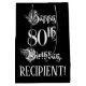 This luxurious and lavish birthday-themed giftbag design features the message “Happy 80th Birthday,” in formal script style text, on a black coloured background. It also has an editable recipient name. A fancy gift bag like this might be used when giving a gift or present in honour of somebody’s eightieth birthday. [~Z0000557]