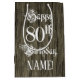 80th Birthday: Fancy, Faux Wood Look + Custom Name Medium Gift Bag