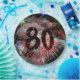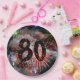Fireworks in black night sky with clouds and stars for 80th birthday party.