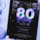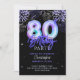 80th Birthday for Him Blue Fireworks Foil Balloon Invitation