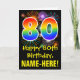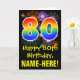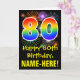 80th Birthday: Fun Fireworks Pattern + Rainbow 80 Card