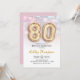 80th Birthday - Gold Balloons Pink Lights Invitation
