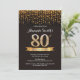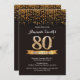 80th Birthday Invitation Black and Gold Glitter