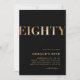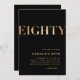 Invite your guests to celebrate in style with this elegant Black and Gold 80th Birthday Invitation. Featuring a high resolution gold foil effect, on a stark black background, this one will wow your friends and family!