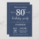 80th Birthday Invitation Blue