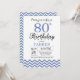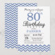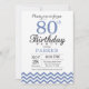 80th Birthday Invitation with Blue Chevron. Black and White. Adult Birthday. Man or Women Bday Invite. For further customisation, please click the "Customise it" button and use our design tool to modify this template.