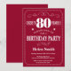 80th Birthday Invitation Burgundy Red and White