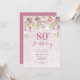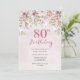 Lovely traditional 80th Birthday invitation with beautiful pink roses and magnolia and a simple patterned background.