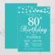 80th Birthday Invitation Teal Aqua Turquoise