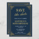 Elegant 80th birthday invitations Men Save the date Navy Gold chic modern