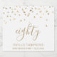 Help her celebrate her 80th birthday in style with this simple but elegant design, featuring faux gold foil triangular confetti sifting down on the word "eighty" in gold handwriting font on a white background. Personalise it with the name of the honoree in gold sans serif font, along with the occasion and date below in smaller gold type.