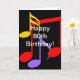 Bright, bold Music Notes of different colours with white text Happy 80th Birthday.