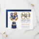 This fabulous men's 80th birthday party Save the Date card featuring a 2-layer navy blue and gold cake with navy blue and gold balloons, the number 80 in gold would be perfect for asking people to put this special date aside for the upcoming 80th Birthday Party. It is traditional and classic while being fresh, modern and contemporary. The back is a coordinating navy blue foil.