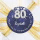 A sticker for a 80th birthday celebration. A navy blue background colour with faux silver stars. The blue colour is uneven. Add your name, text. Text: Thank you for celebrating with me!