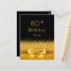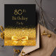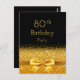 Elegant, classic, glamourous and feminine style party invitation. A faux gold coloured ribbon and bow with golden glitter and sparkle, a bit of bling and luxury for a birthday. Black background. With the text: 80th Birthday! on front