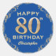 80th Birthday Party Blue and Gold Glitter Frame Classic Round Sticker